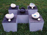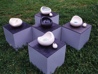 大きな器と小さな器のペアで一つの花器。子犬が親にじゃれるような仕草が制作のイメージです。横に並べたり、中に入れたり使い方も自由に遊ぶことができます。