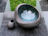 大きな器と小さな器のペアで一つの花器。子犬が親にじゃれるような仕草が制作のイメージです。横に並べたり、中に入れたり使い方も自由に遊ぶことができます。