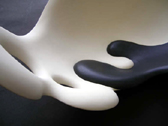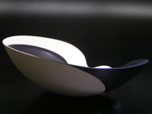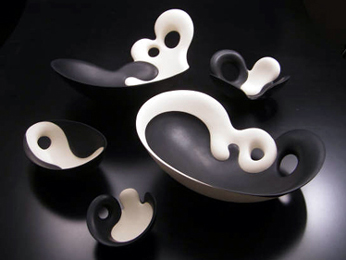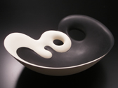母に抱かれ甘える子のように、二つのシルエットが寄り添う器。白と黒の強いシルエットが優しさのなかに強さを感じさせます。