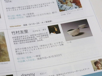 2012年8月25日発行の「アートコレクター」42号、‘2012新人アーティスト300人’特集にてご掲載いただきました。