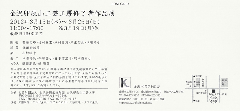 平成20年から平成23年に工房を修了したメンバー13名によるグループ展。新作のぐい呑みを出品予定です。