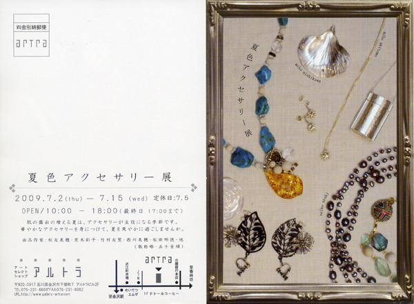 夏のお洒落のポイントは、個性的なアクセサリー。工芸作家が一点一点ハンドメイドで創り上げた装飾品ならではのセンスと仕上がり。
