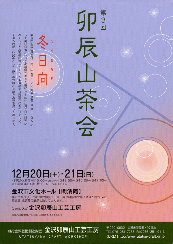 12月20日(土)・21日(日)に金沢市文化ホール<閑清庵>にて「第3回 卯辰山茶会」を開催しました。