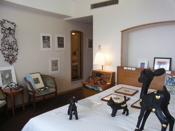 ガレリアポンテは933号室。ホテルの什器はそのままに、生活空間にアートを加えた様子が分かりやすくイメージできます。