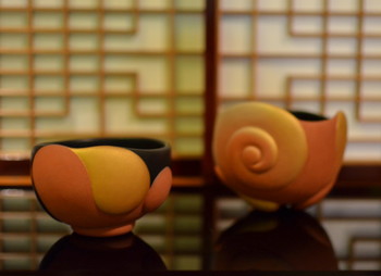 梅の間には茶碗を中心に。