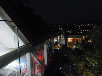 18時半の受付の頃にはすっかり日も暮れ、寺町台地から望む夜景に来場者もうっとり。ラウンジにはウェルカムドリンクが用意され、シャンパンを片手に作品を見ていただきました。