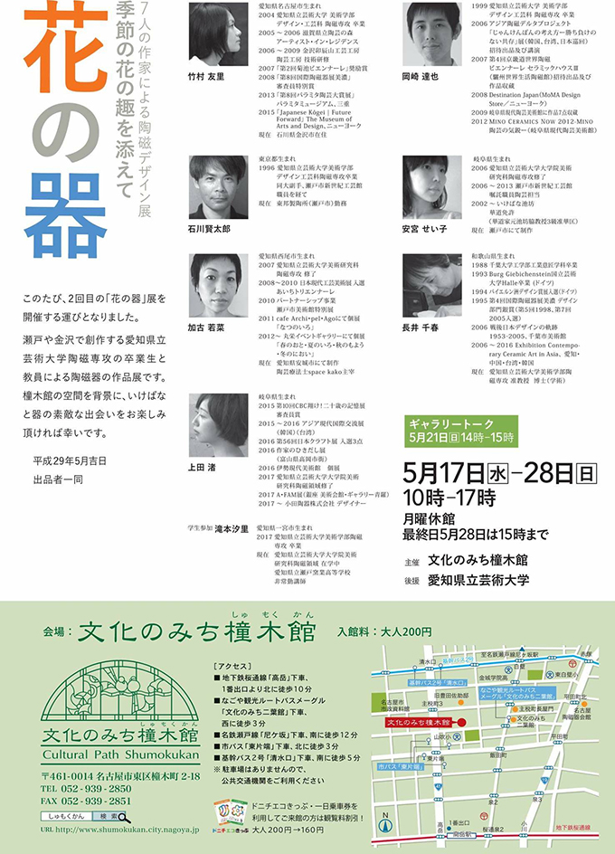 愛知県立芸術大学関連の展覧会が続きます。 「花の器」展は今回で2回目。第1回から少しメンバーチェンジされています。 お近くの方は是非に。