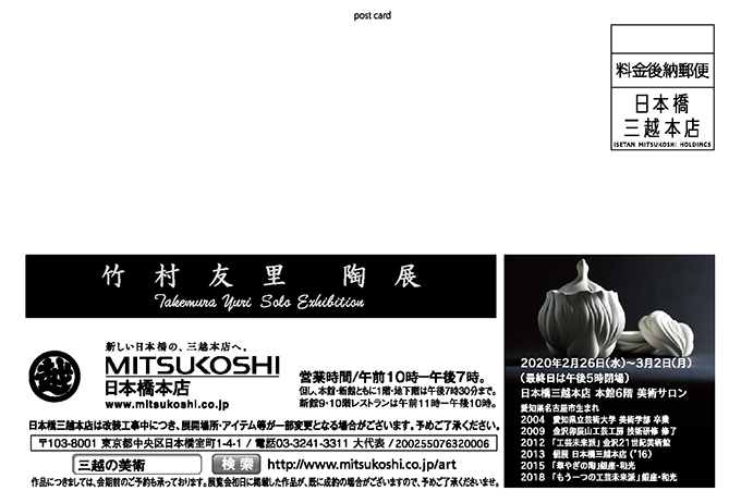 DMの写真は、香炉と香合。この他に椀、新作の雛人形など出品いたします。