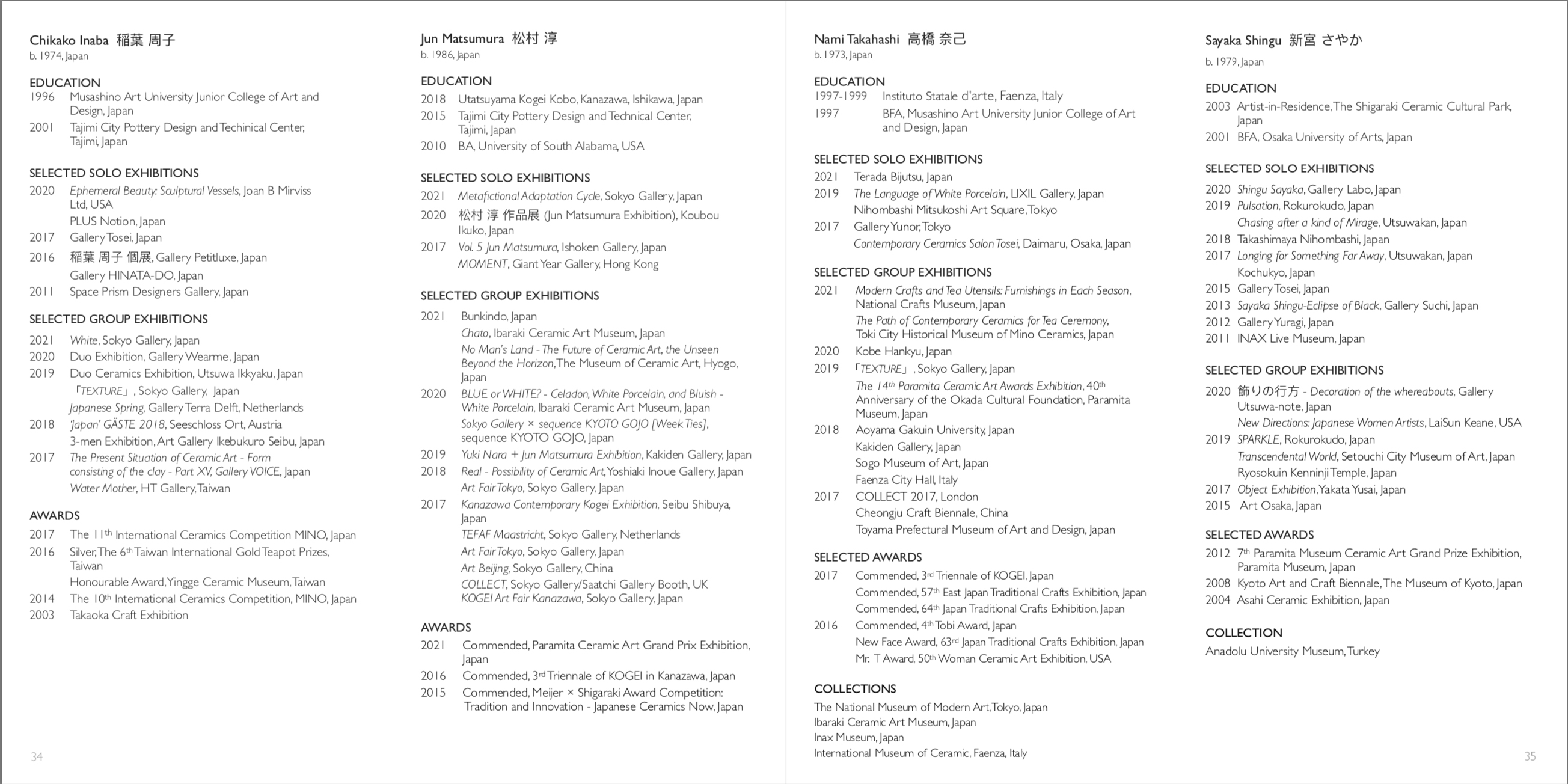 This is a new trend that has emerged since the 2000s in Japanese modern ceramics driven by both the inheritance of tradition and modernism based on the destruction of norms. These artists contextualized Japanese ceramics into a poetic art by exploring new modelling techniques and pure observation of the world. As a result, this has attracted young talented people to ceramic art and has become the driving force behind the exciting space of contemporary Japanese ceramics today.