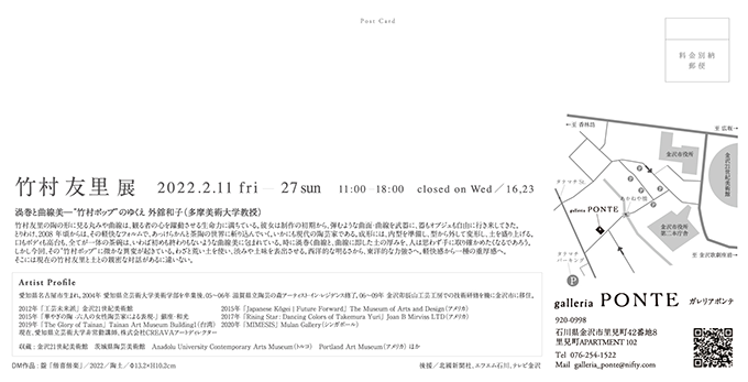竹村友里展によせて工芸界を長らく俯瞰してこられた外舘和子先生に文章をお寄せいただきました。